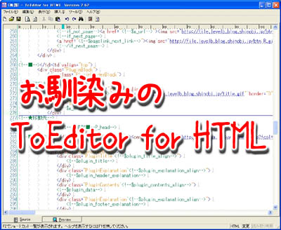 そこで、htmlとcssはToEditor for HTML(T.Oshiba's Software)を使用。