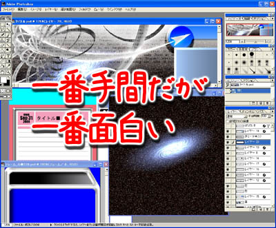あとは、銀河作って、メタルチックなフレーム作って、効果つけて…と